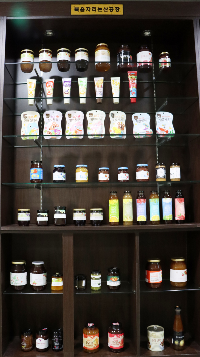 겨울철에는 ‘복음자리 유자차’ 인기가 참 높습니다. 복음자리 차류 제품 매출의 60%를 차지하니까요. 복음자리 유자차는 완벽하게 선별한 유자에 국산 배를 넣었어요. 그래서 유자의 쓰고 아린 맛을 순화한 부드러움의 극치일 겁니다. 유자차 한 병에 당침 유지 기준 80%의 유자를 담아 향긋하고 달콤한 유자차를 향과 함께 그윽하게 즐기실 수 있을 겁니다. 유자차는 차게 해서 마시면 더 환상적인데 유자와 배의 궁합, 이런 연구 실험을 하는 당사 연구소는 경기도 이천, 대상 중앙연구소에 입주하여 있습니다. 망고베이스 제품도 연구개발중입니다. 연구소 방문에는 어려움이 따르지만, 논산공장 견학은 비교적 편합니다. 견학로는 병 충전소와 포장하는 곳, 전시장 등입니다. 코로나 이전에는 건양대생, 생산성본부 교육생 등은 물론 유치원생들도 왔어요. 우리가 찾아갈 경우도 있습니다. 논산시 대표 축제인 딸기축제때는 물론이고 취업박람회에도 우리 부스가 있을 겁니다.