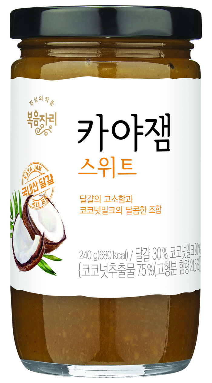 국내산 달걀의 고소함과 코코넛밀크의 달콤한 맛을 맛있게 조합한 ‘카야잼’ 2종도 출시했습니다. 국내산 달걀을 주원료로 사용해서 만들었는데요.... 싱가포르 전통 그대로 달걀의 고소한 풍미가 일품인 카야잼 플레인, 진한 달콤함이 어우러진 카야잼 스위트 2종으로 구성되어 있죠. 홈 베이킹, 홈 디저트에 관심이 많은 2030 여성 또는 10대 자녀를 둔 주부들이 빵, 크래커 등에 잼 발라서 간단한 아침 식사나 디저트로 먹기 좋은 제품입니다. 영양이 가득한 신선 계란과 코코넛밀크의 풍부한 맛에다가 부드러운 발림성이 특징입니다. 기존 잼이 가지고 있는 병 포장에 대한 불편함을 개선한 튜브 용기의 잼도 개발하였습니다. 튜브에 담겨 있어 스푼이나 나이프를 사용하지 않고 바로 짜먹도록 한 거죠. 깨질 염려 없고 가벼운 튜브에 담겨 있어서 아이들도 직접 짜먹을 수 있도록요~ 딸기, 블루베리, 망고, 사과버터 4가지 맛으로 모두 신선한 과일을 높은 함량으로 담아 보았습니다.