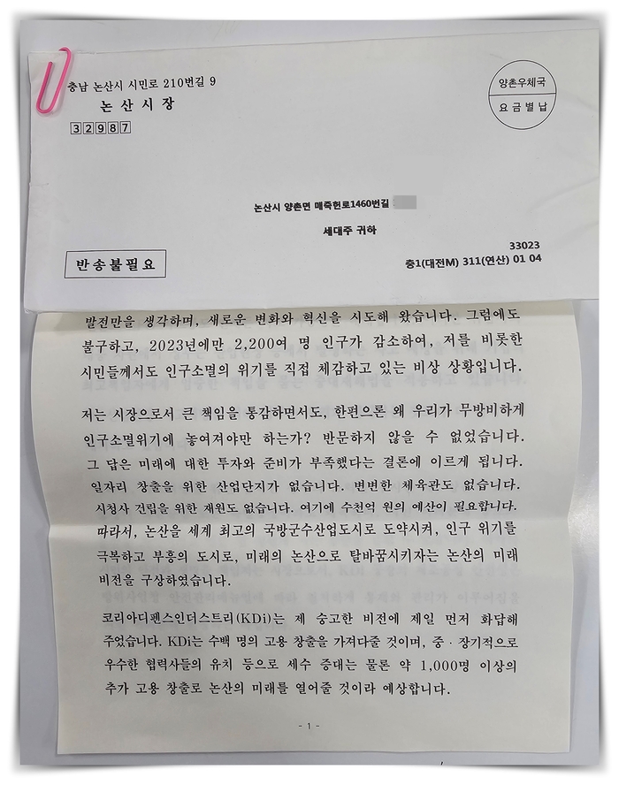 주민 반발이 거세지자 2024년 초, 백성현 시장은 양촌 주민들에게 편지 3천여 통을 보냈다. 편지에서 백 시장은 “KDI는 수백 명의 고용 창출”, “우수 협력사 유치”, “세수 증대”, “약 1천 명 이상의 추가 고용 창출” 등을 언급하며 경제효과를 강조했다. 동시에 “폭탄공장 또는 폭발공장으로 왜곡하며 공포와 불안을 자극시키는 현 상황에 통탄”이라는 취지의 표현을 넣었고, 제조공정의 안전성은 방위사업청 안전관리 매뉴얼에 따라 통제·관리된다고 밝혔다. 정치는 종종 ‘설득’과 ‘규정’을 동시에 한다. 문제는 주민들이 던진 질문이 “경제효과가 있느냐”만이 아니었다는 점이다. 질문은 대개 안전·절차·영향평가·정보공개의 영역에 있었다. 그런데 그 질문을 던지는 시민을 “공포를 자극하는 왜곡 세력”으로 규정하고 읽는 순간, 편지는 설득이 아니라 선 긋기로 갈라치기가 되었다. 결국 그 편지는 일부 시민에게는 “시장이 설명하려고 노력했다”로, 다른 시민에게는 “시장이 낙인을 찍었다”로 기억되었다. 갈등이 정치화되는 과정은 늘 이런 식이다.