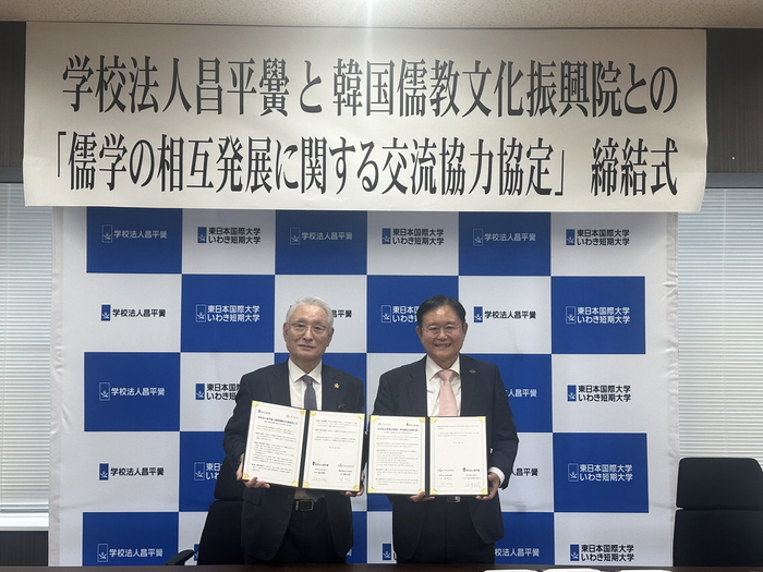 한국유교문화진흥원(원장 정재근, 이하 한유진)은 4월 15일 일본 후쿠시마현 이와키시에 위치한 학교법인 쇼헤이코를 방문해 업무협약(MOU)을 체결했다. 이날 협약식에는 미도리카와 히로시 이사장을 비롯해 동일본국제대학 관계자 등 20여 명이 참석했다.