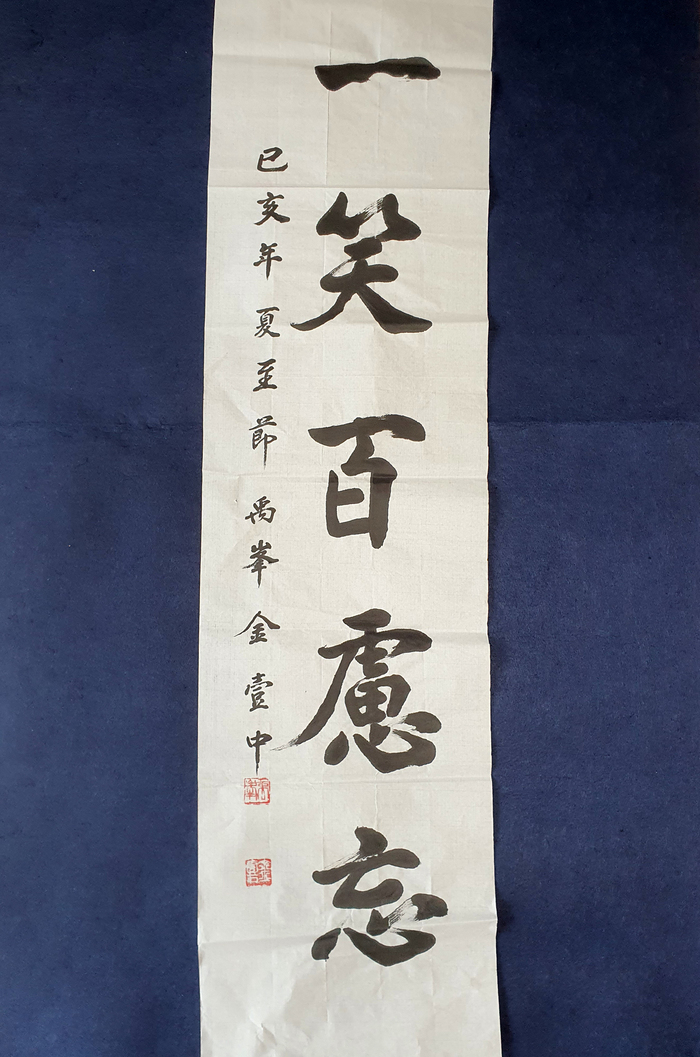 집 주인의 성품인 듯 반듯한 서체의 천자문이 벽에 걸려 있다. ‘장손에게 줄 선물’이라고 하셨다. 한자를 배우지 않는 지금 아이들은 읽을 수도 없고 뜻도 모르겠지만, 서체에 담긴 할아버지 마음은 느낄 수 있을 것 같다. 30년 내공이 깃든 묵향이 벽에 걸린 글씨에서 배어나오는 듯했다. 김일중 어르신(79세)이 자서전 출판하려고 시간이 날 때마다 쓰고 있는 파란 공책 속의 이야기를 들여다본다.