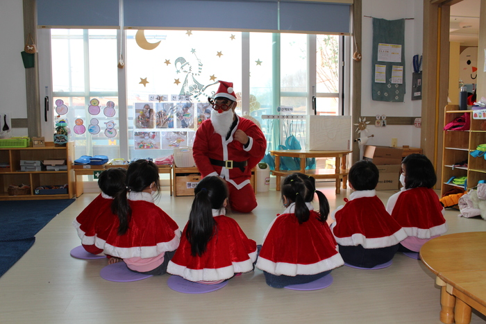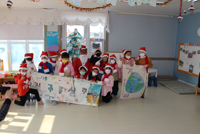 유향란 원장은 인동어린이집 어린이들 모두가 하나밖에 없는 지구를 지키고 가꾸는 ‘지구지킴이 어린이특공대’라고 소개한다. 인동 특공대들은 쓰레기도 스스로 줍고, 전기도 아끼고, 직접 기른 채소도 잘 먹는다. “인동 어린이들은 매주 월요일 고기 없는 식단으로 채소 푸성귀 점심을 먹는데, 그래도 잘들 먹고, 튼튼하게만 자라요.” 이정민 원감의 귀띔이다. 온누리반 7세 어린이는 기자에게 자랑한다. “우리들은 비행기나 배타고 온 먼데 외국 음식보다 가까운 곳에서 우리 어른들이 키운 거 먹어요. 탄소발자국 줄이면서 우리 친구인 지구가 매일매일 건강해지도록 돕고 있어요.” 이 말을 들으니 대견함과 동시에 부끄럼이 밀려온다..... 이런 지구지킴이 특공대 소식을 듣고 총각 산타가 겸사 방문한 것이다. 신나는 반 5세 아이는 “루돌프는 왜 같이 안 왔어요?” 묻는다. “다음에는 꼭 같이 올게.” 총각산타의 진땀 빼는 답변을 듣다가 문득 “아이들은 대체 몇 살까지 산타의 존재를 믿을까?” 갸웃뚱해보는 동안, 아이들의 질문 공세는 거침없는 하이킥이다. 손선우 산타는 강경에서 꽤 유명한 칼국수 식당을 운영한다. ‘점심 때라서 한창 바쁠 땐데, 이리 나와도 괜찮은지’ 걱정하는 기자의 질문에 그의 대답은 의외다. “저는 깜짝이벤트나 진득한 봉사활동을 짬나는 시간에만 하는 게 아니라, 별도의 시간을 빼서 하는 편이다”면서 “아이들이 없으면, 산타도 없는 걸요?” 어디까지나 아이들이 주인공이라는 얘기다. 손선우 산타는 “아이들의 올바른 성장을 위해 유향란 원장이 제창하는 ‘놀이터 포럼’을 적극 찬동하며 후원하고 싶다”며 적극적인 지지의사를 표한다. “미끄럼틀과 그네 등의 획일적인 놀이터보다 어린이의 시선으로 만드는 다양한 놀이터로 일대 전환해야 하는 시점”에 공감한다면서 “이를 위해서는 설계부터 시행, 준공까지 모든 과정에 놀이터 주인인 어린이와 학부모 의견을 적극 반영해, 창의적이고 생태문화적인 놀이터가 많아지면 좋겠다”고 피력한다. 오늘 인동어린이집을 방문한 목적도 밝혔다. 인동어린이집의 생태놀이터뿐 아니라, 지구살리기를 적극 실천하는 친환경적 교육에 일조하고 싶어서 방문했다는 것이다. 그러고 보니 인동어린이집의 크리스마스 추리는 ‘프라스틱 없는 자연 추리’였다. 어른총각산타는 아이들이 직접 만든 추리를 칭찬해 주더니 사진도 같이 찍고, 캐롤도 합창하면서 아이들과 신나게 놀았다. “겨울 산타의 최고선물은 칭찬과 동행이라고 봐요. 우리 함께 놀아봐요!”
