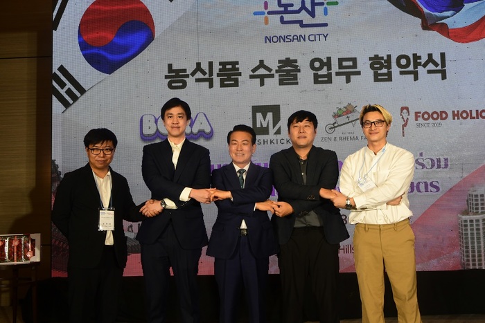 [500억 수출협약 쾌거] 백성현 시장은 지난 2월 17일 해외시장 공략 및 지역생산품 유통 활성화를 위해 베트남에 ‘통상사무소’를 개설했다. 시장정보와 인적 네트워크가 부족한 상황에서 해외 진출의 위험 부담을 줄이기 위한 공격적인 인프라 구축으로 전국 기초지자체 중 베트남에 ‘통상사무소’를 개설한 것은 논산시가 최초다. 또한, 하노이에는 논산 농산물이 진열된 홍보전시관도 개소했다. 이런 결과, 베트남에서 2월 14일부터 18일까지 총 7건의 협약을 맺으며 총 2200만 달러 (약 290억 원)에 상당하는 딸기, 배, 인삼, 곶감, 고구마, 샤인머스캣 등이 수출길에 오를 예정이다. 또한, 태국에서는 3월 30일 총액 1600만 달러 (약 210억 원)에 달하는 수출협약이 체결되며, <육군병장> 브랜드가 새겨진 논산의 우수 농산품이 열대과일의 성지인 동남아 시장을 누비는 또 하나의 활로가 열리게 되었다.