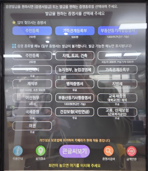 [무인민원발급기 취약계층 증명서 발급 확대]
