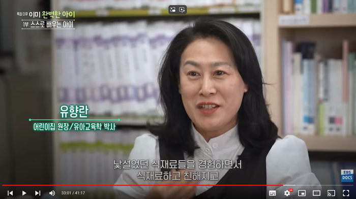 지난 3월 23일, EBS에서 <이미 완벽한 아이>라는 특집 다큐를 방영했다. 특집 다큐에서는 “성인 뇌의 80%까지 성장하는 영유아기, 부모들은 아이들이 성공해서 행복해지기를 바라는 마음에서 조기교육을 시키고 있다”며, “과연 이러한 조기 사교육이 아이들의 행복에 지름길이 될 수 있을까?”라는 질문을 던지고 있다.https://www.youtube.com/watch?v=wULRsTaoum4&list=PLvNzObWMMx6sNgzzI0-1BWSeDV2FbD6gp&index=2 이에 대해 유향란 원장은 “아니다”라는 명료한 대답을 제시한다. 유 원장은 “아이들은 정보를 습득할 때 어른보다 훨씬 더 많이 뇌를 쓰고, 좌뇌와 우뇌를 모두 사용할 수 있다. 무한한 가능성을 가진 우리의 아이들은 뇌 자체의 비밀만으로도 이미 아이들은 완벽하다”는 것이다. 그러면서 유향란 원장은 “부모는 내 아이가 똑똑해졌으면 하는 간절한 마음에 아이에게 강제로 학습을 시키려 하지만, 원하지 않는 학습을 강제로 해야만 하는 아이들은 스트레스를 받게 되면서 아이들의 뇌가 위험해지고 있다”고 경고한다. 유 원장은 서울대학교 인성교육연구회 이상준 연구원의 「이타적 자존감」이란 책을 인용하면서 “이타적 자존감 즉 인성을 키우기 위해서 부모는 잔소리를 하지 않아야 한다”며, “이타적 자존감은 선척적으로 타고나는 것이 아니라 개발이 가능하다”는 것이다. 여기서 ‘이타적 자존감(인성)’이란 ‘자기 자신을 세상에 도움을 주는 가치있는 사람’으로 여기면서, 그저 나만을 바라보는 것이 아니라 타인의 아픔과 결핍에 공감하며 그들의 문제를 해결해 주면서 자연스럽게 창의성과 혁신성이 넘치는 인재가 되는 것이라고 설명한다. 반면 ‘이기적 자존감’은 ‘나는 타인보다 가치가 큰 사람으로 여긴다’며, 이런 이기적 자존감은 개인의 성공과 성취에 긍정적인 작용을 하지만, 과도하면 남보다 더 많은 것을 가지고 더 잘나고 싶은 생각이 강해지면서 욕망에 가득 찬 자기중심적 인간이 된다는 것이다. 유향란 원장은 “우리 아이들의 뇌 발달을 위해 무엇을 해줘야 하는지를 반문하며, 강제적 학습이 아닌 아이들의 자발성과 내적 동기를 키워줄 수 있는 놀이와 경험을 아이들 스스로 개발해야 한다”고 강조한다. 따라서 어린이집과 유치원에서는 학습 외에 다양한 놀이와 경험을 통해 아이들의 뇌 발달에 자극을 주어 건강하고 분별력 있는 아이로 성장할 수 있도록 조기교육이 아닌 부모와 교육자의 사랑이 실현되어야 한다는 것이다.