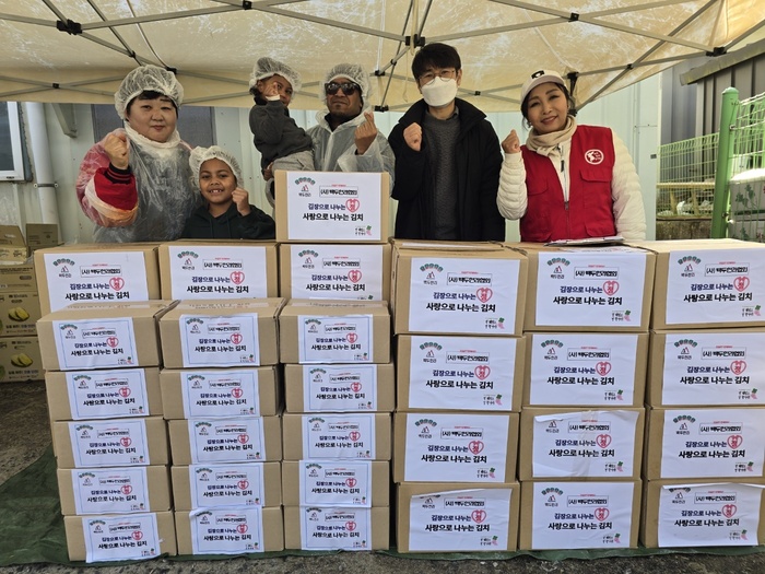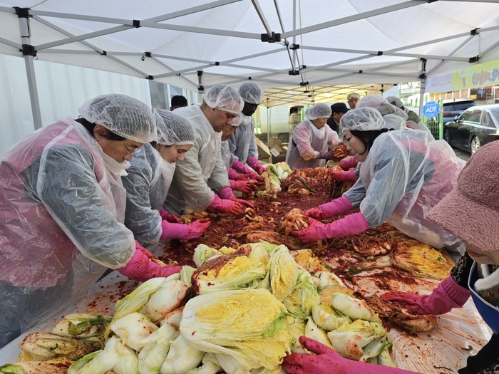 이날 정성껏 담근 김장김치는 북한이탈주민 가구, 지역사회 취약계층, 독거·노령 어르신 등 100여 가구에 전달됐다.