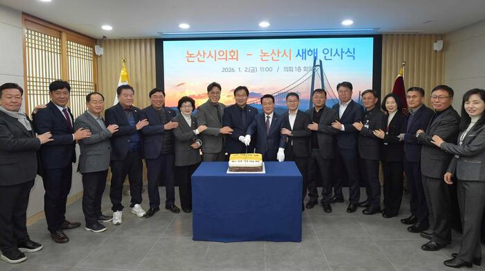 참배를 마친 뒤 시의회는 의회 1층 회의실에서 ‘새해 인사식’을 열고 2026년 병오년(丙午年) 새해 의정 활동의 출발을 알렸다. 인사식에는 조용훈 의장을 비롯한 시의원들과 의회사무국 직원, 백성현 논산시장과 간부 공무원들이 참석했다.