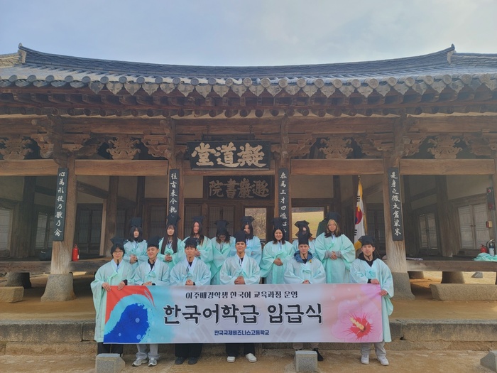 한국국제비즈니스고등학교(교장 윤덕규)는 3월 16일 오후 2시 30분 논산 돈암서원에서 한국어학급 학생들을 대상으로 입급식을 진행했다.
