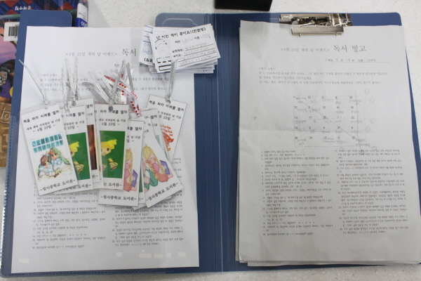 계룡시 엄사중학교(교장 조항규)는 ‘세계 책과 저작권의 날’을 맞아 지난 21일부터 23일까지 전교생과 전교직원을 대상으로 책갈피 배포, 독서빙고, 행운권 추점 들을 통해 독서에 대한 관심을 유도하는 기념행사를 마련했다. 매년 4월 23일은 ‘세계 책과 저작권의 날’로, 지난 1995년 국제연합총회에서 유네스코가 세계인의 독서 증진을 위해 정한 날이다. 그 기원은 에스파냐 카탈루냐 지방에서 책을 읽는 사람에게 꽃을 선물하던 ‘세인트 조지’축일과 1616년 세계적인 문호인 세르반테스와 셰익스피어가 사망한 날에서 기인하고 있다. 현재 책의 날은 기원국인 에스파냐를 비롯해 프랑스, 노르웨이, 영국, 한국, 일본 등 전 세계 100여개의 나라에서 이 날을 기념하고 있다. 이를 위해 엄사중은 23일 학교에서 자체 제작한 책갈피가 소진될 때까지 행사 기간 중에 대출한 학생에게 1인당 1개씩을 배포해 학생들로부터 독서에 대한 관심을 유도했다. 특히 독서 빙고는 도서관에서 배부한 빙고용지에 정답을 기록하여 제출하면 정답자 가운데 추첨을 통해 10명을 뽑아 기념품을 증정했으며 서예인(3-10)학생을 포함해 10명이 5,000원권 문화상품권을 받았다. 또한 이날 행운권추첨을 통해 지난 21일부터 23일까지 책을 대출한 모든 학생을 대상으로 총 10명에게 5,000원 문화상품권을 각각 전달했다. 엄사중 조항규 교장은“이번 행사를 통해 세계 책과 저작권의 날의 취지와 책 속에 미래가 있다라는 평범한 진리를 되새기는 계기가 됐다”고 말했다. <저작권자 ⓒ 논산계룡일보 무단전재 및 재배포 금지>